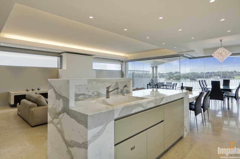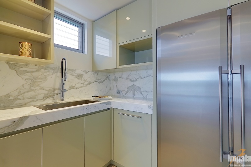 Our client was building an architecturally commissioned house on a waterfront location in Sydney’s inner west. The house is substantial and features opulent fittings and finishes throughout. Impala was commissioned to build joinery for the entire house. Extensive use of natural stone and polyurethane was requested as well as some timber veneer joinery. The result is a stunning mix of joinery which is sympathetic to the house design and the clients’ practical needs. Impala is proud of this project and the client is too.