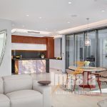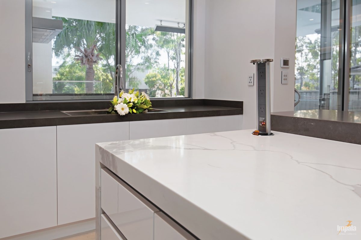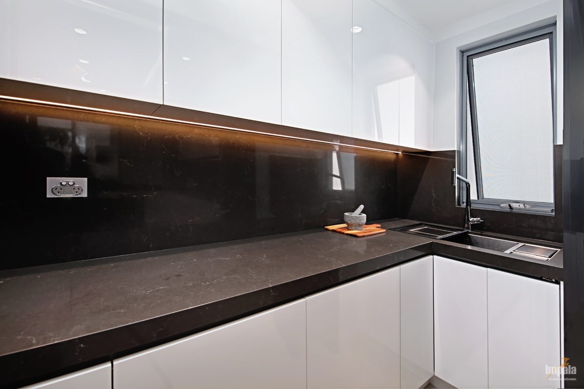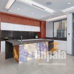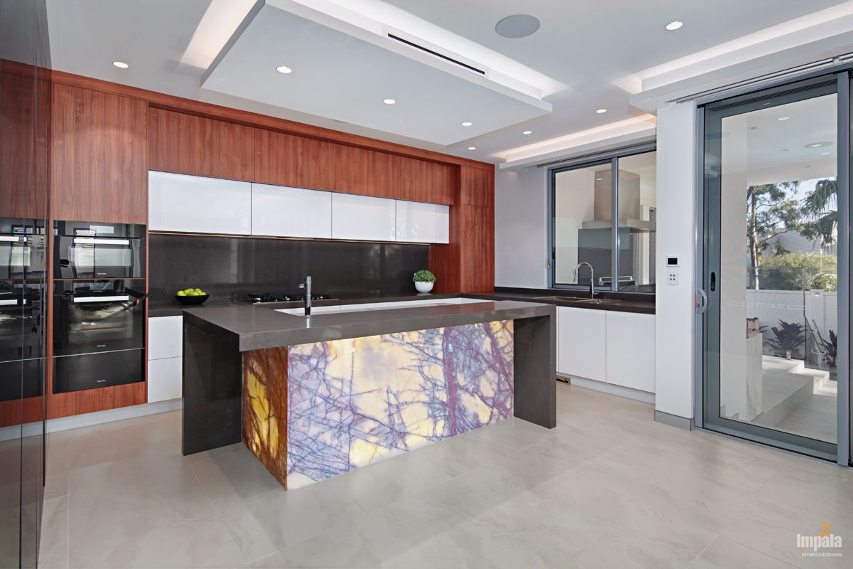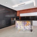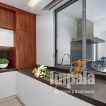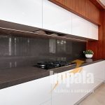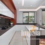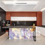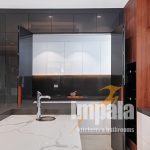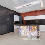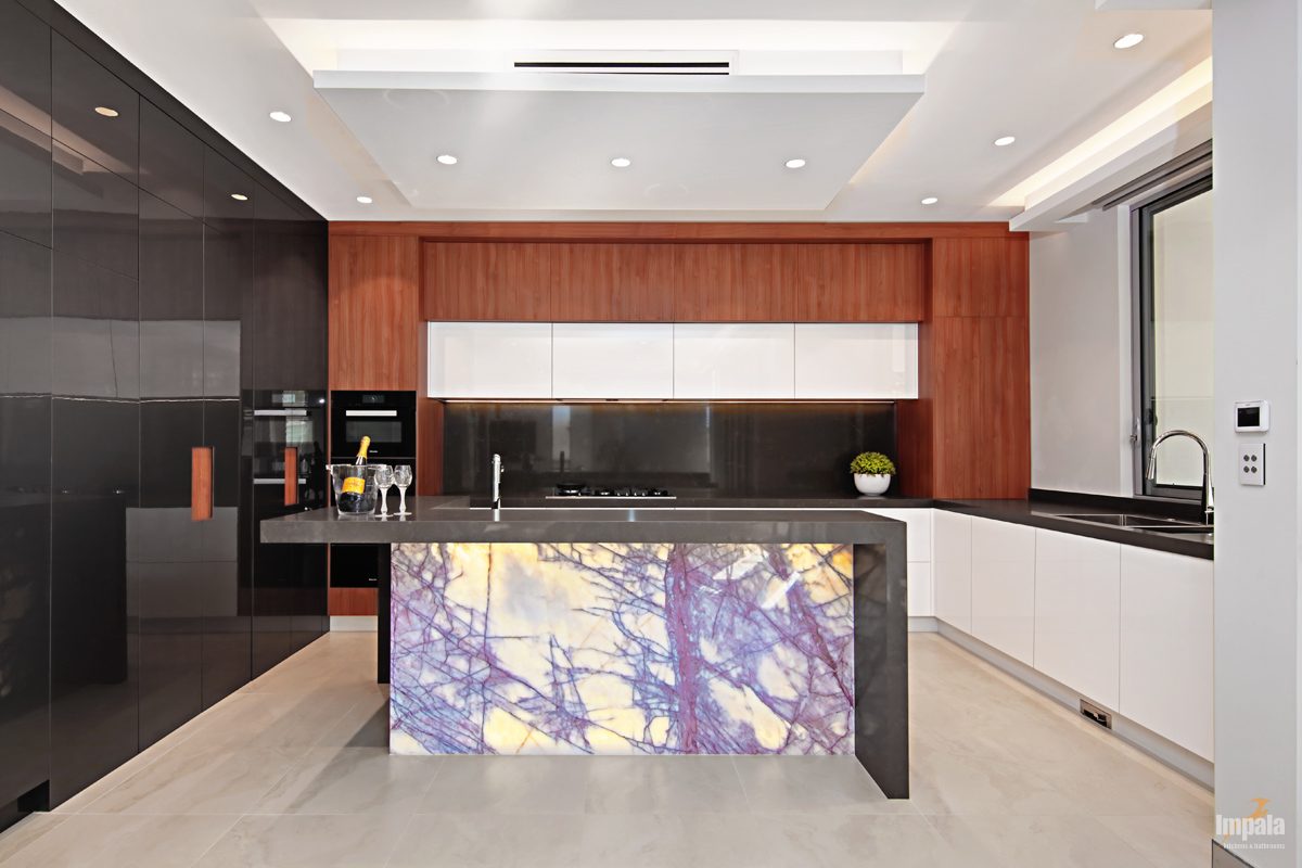 Glossy and luxurious surfaces with Minimalist, sleek, modern appearance defines the kitchen