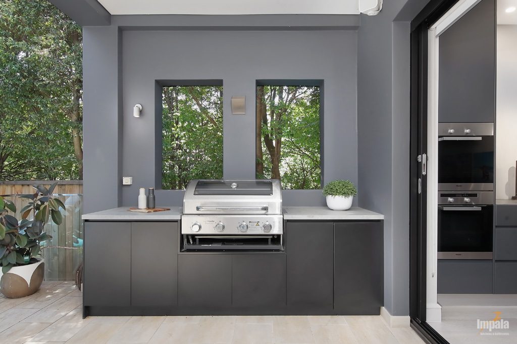 The look was continued the outside BBQ area, entertainment cabinet and bar.