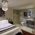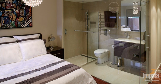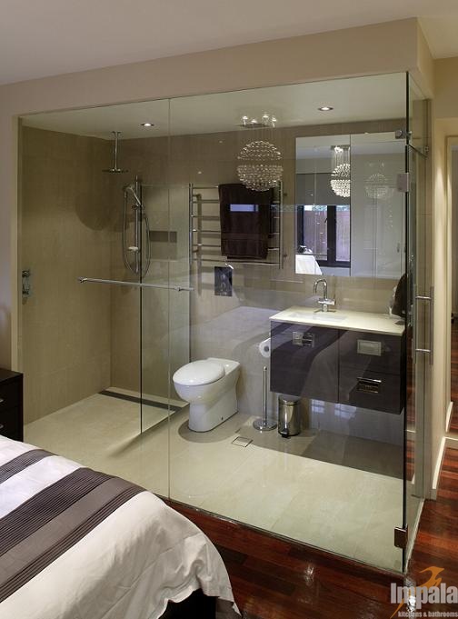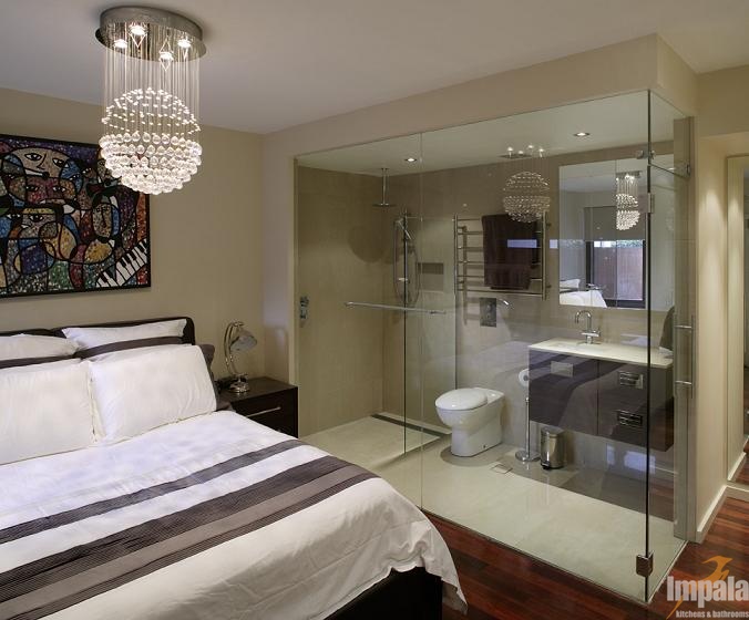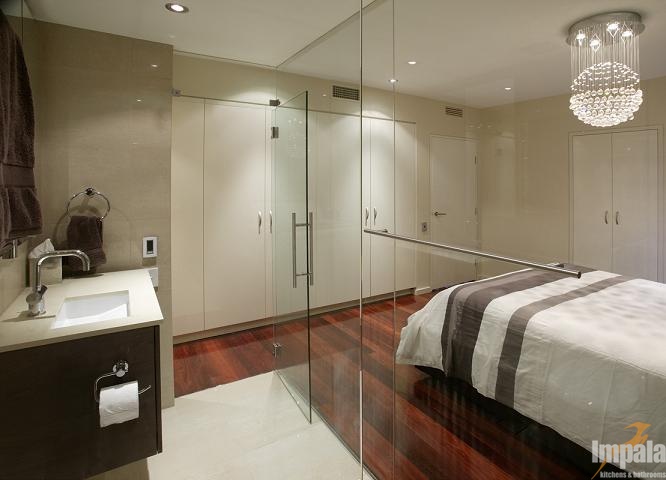 A glass wall in the ensuite bathroom to make both the bedroom and bathroom feel more spacious