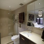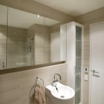 The main bathroom features a large shaving cabinet and one tall frosted glass cabinet to provide much needed storage