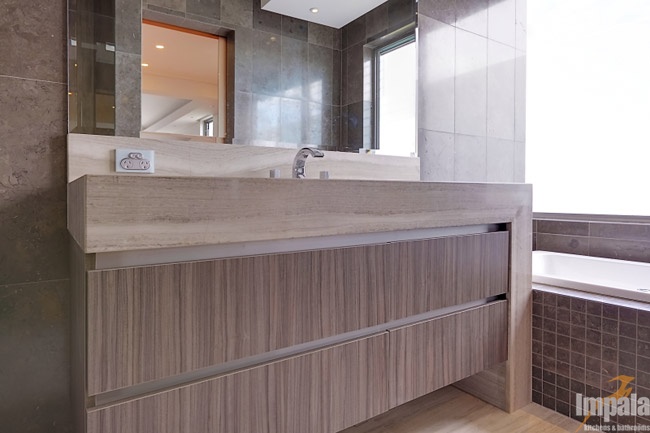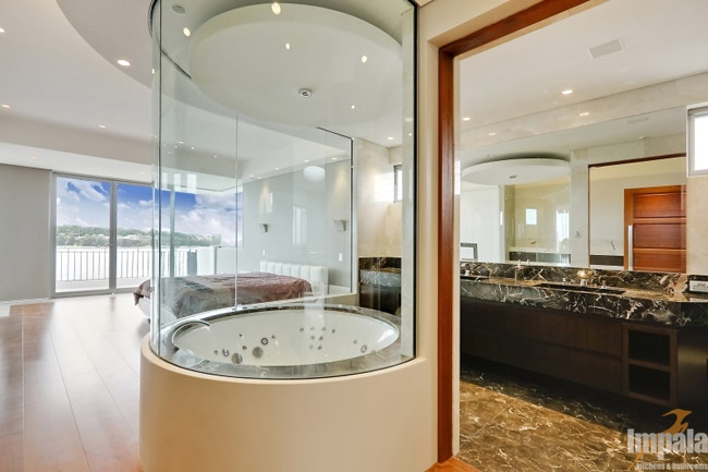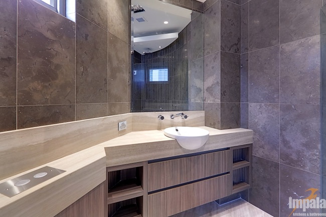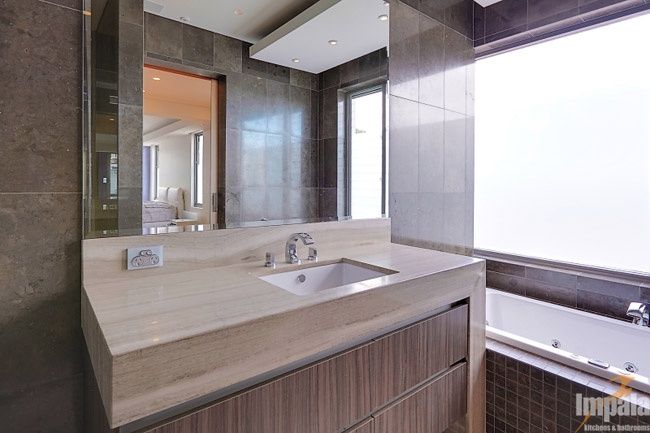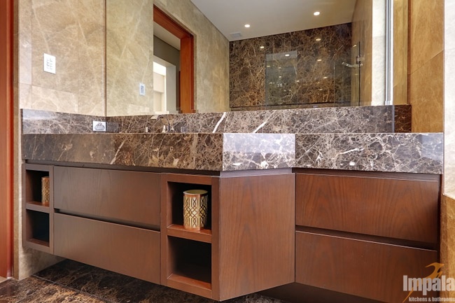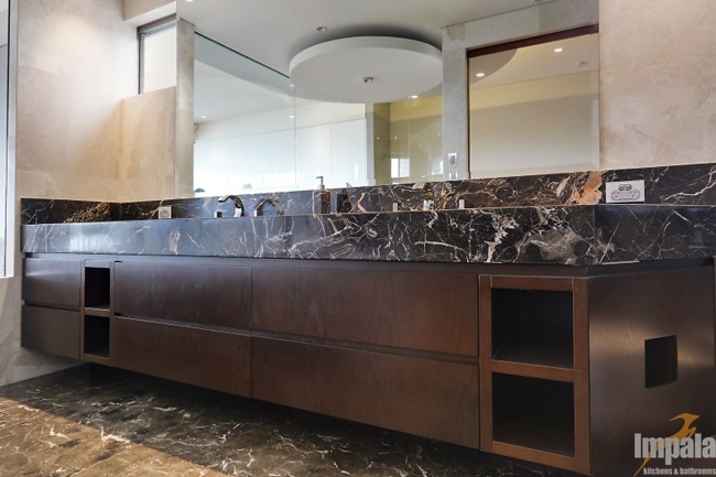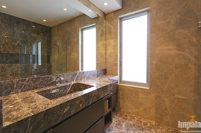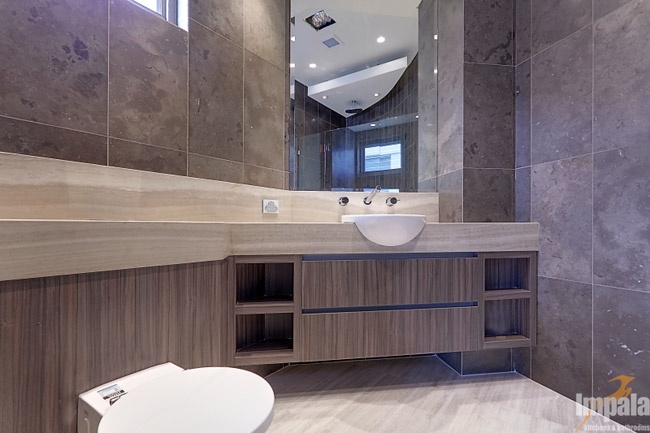 Our client was building an architecturally commissioned house on a waterfront location in Sydney’s inner west. The house is substantial and features opulent fittings and finishes throughout. Impala was commissioned to build joinery for the entire house. Extensive use of natural stone and polyurethane was requested as well as some timber veneer joinery. The result is a stunning mix of joinery which is sympathetic to the house design and the clients’ practical needs. Impala is proud of this project and the client is too.
