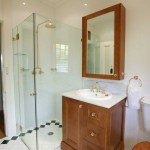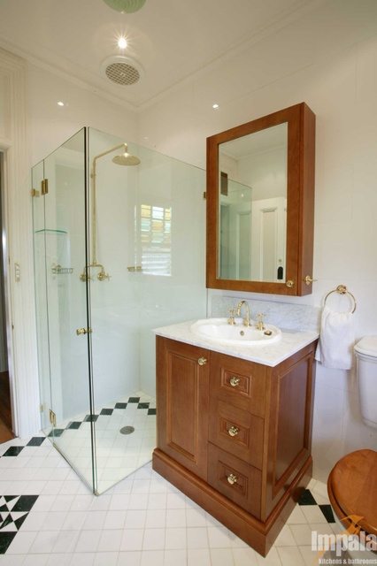 Our client was renovating a heritage listed house on Sydney’s lower north shore.The house was a traditional, federation style with lead lights, ornate ceilings, original timber floor boards, detailed cornices and high skirting boards. The client wanted to renovate with the home’s architecture in mind. The client requested Impala to design a timber vanity and shaving cabinet for the main bathroom and cabinets for her laundry.