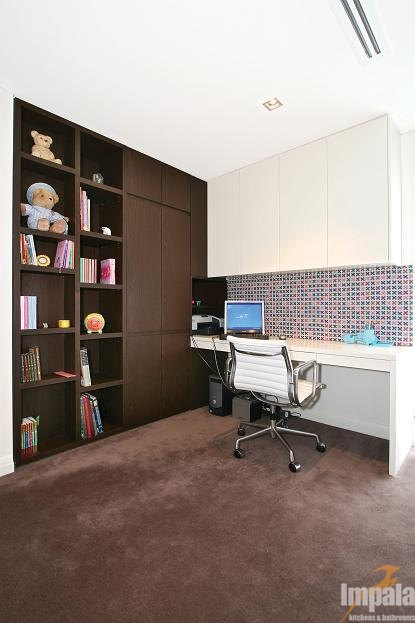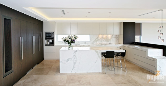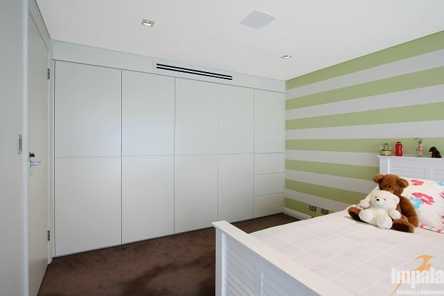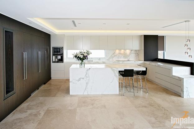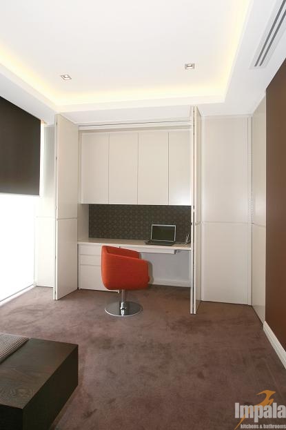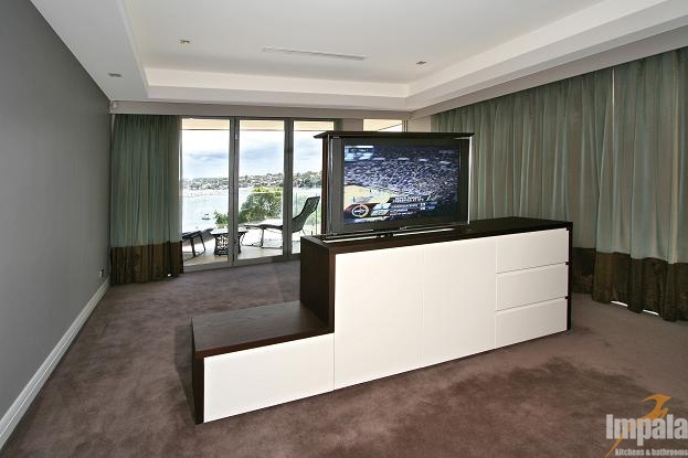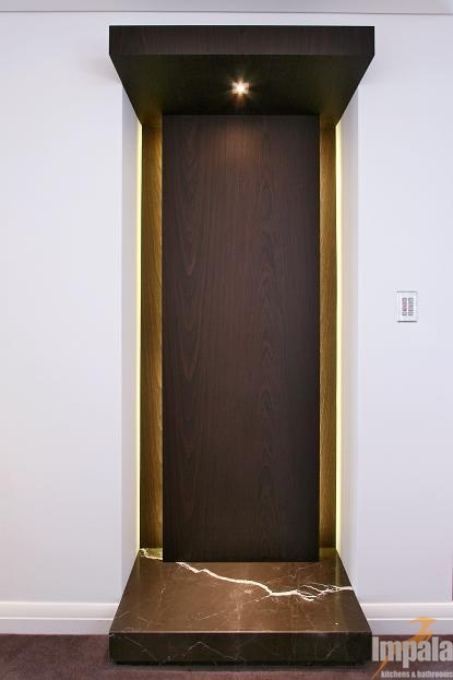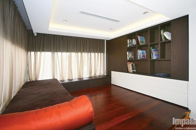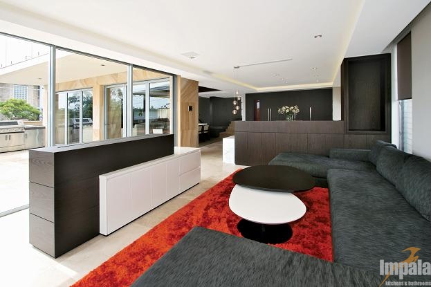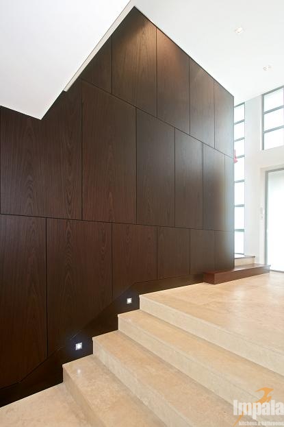 The client was building a new architecturally designed house on the water in Sydney’s inner west. The client wanted custom joinery throughout the home and requested natural timber veneer and stone be used to give the residence opulent ambience. Impala built all of the homes’ joinery including the kitchen, vanities, entertainment units, BBQ, gym cabinets, laundry, wardrobes, bedroom, under stair panels and display areas. Impala acknowledges Inspire Design for the joinery designs.