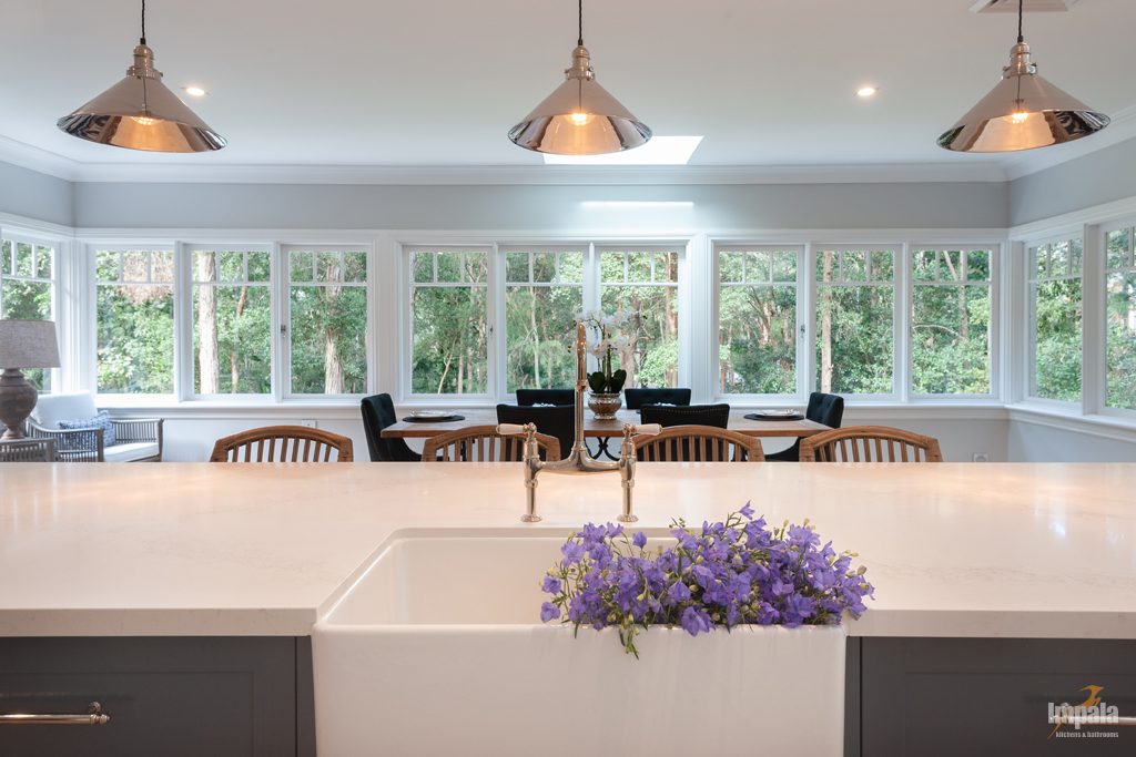 An active family equals a hungry family, and a hungry family equals a busy kitchen. This stunning open-plan kitchen is large and robust enough to cater to bustling domestic life and looks sensational to boot. The kitchen exudes a modern Hamptons vibe that complements the wider aesthetic of the renovated home.