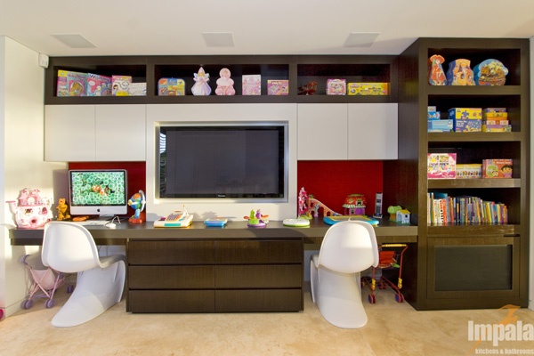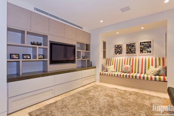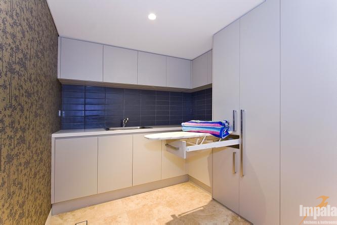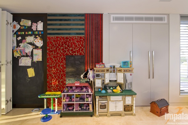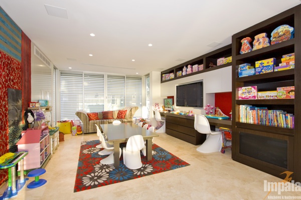 Our client was building a new house in Sydney’s Eastern suburbs. The house was to be contemporary with all the latest technology and fittings. The house has expansive views over the harbour and the client wanted the kitchen area to showcase the outlook and have a “wow” factor. A younger couple with two small children, the home needed to be practical for a growing family of four. Included in the whole house joinery, were purpose built cabinets for a children’s play area. The client was open to using the latest finishes in her home, selecting different materials for each area. Impala acknowledges Inspire Design for the joinery designs.