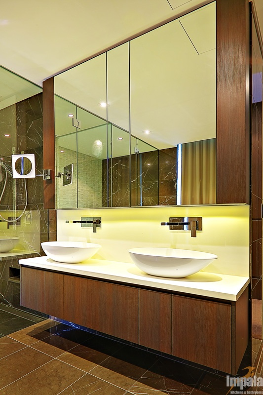 Our client was building a new home in Sydney’s East and was looking to install custom joinery with opulent materials throughout the extensive home. Impala kitchens and bathrooms was commissioned to design and install custom joinery for this project. Impala’s scope of works included the kitchen, laundry, all bathrooms, a bar area, all wardrobes, entertainment units and privacy screens.