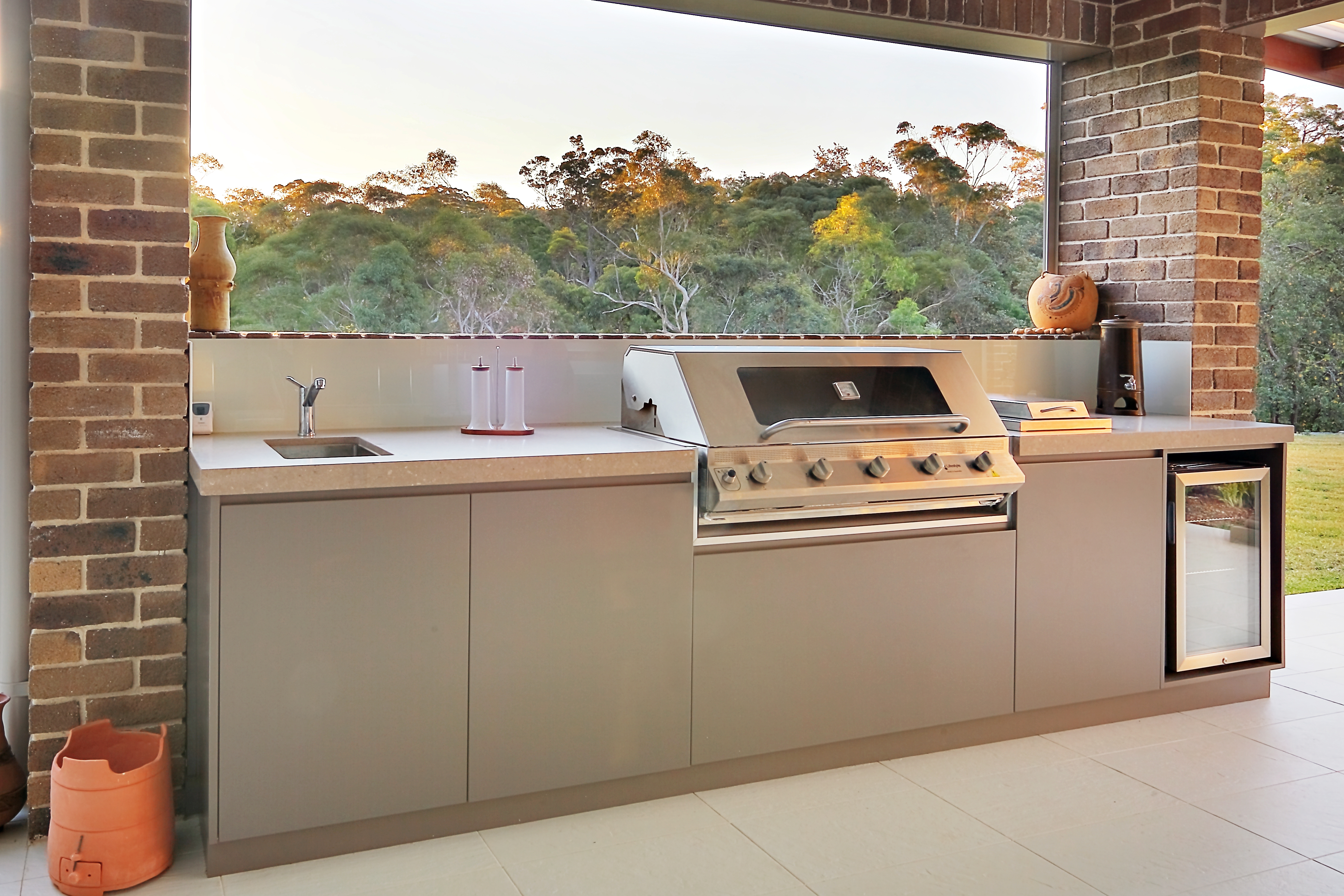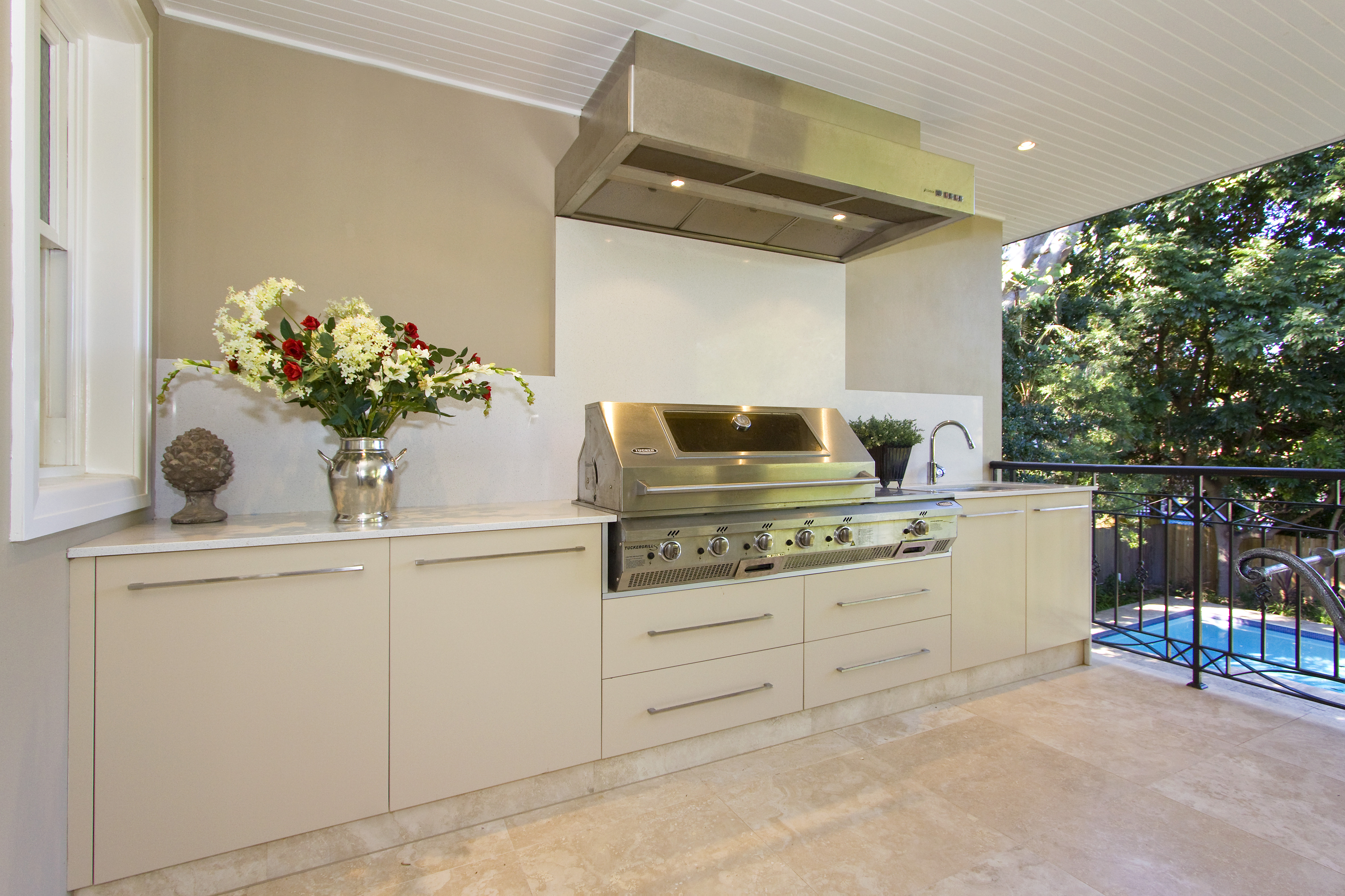Make the most of the Australian climate and install an outdoor kitchen/BBQ area. There are many treatments for an outdoor kitchen a few of the most important considerations will be: