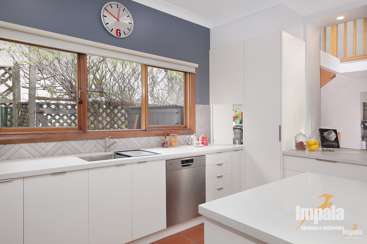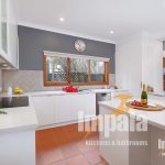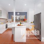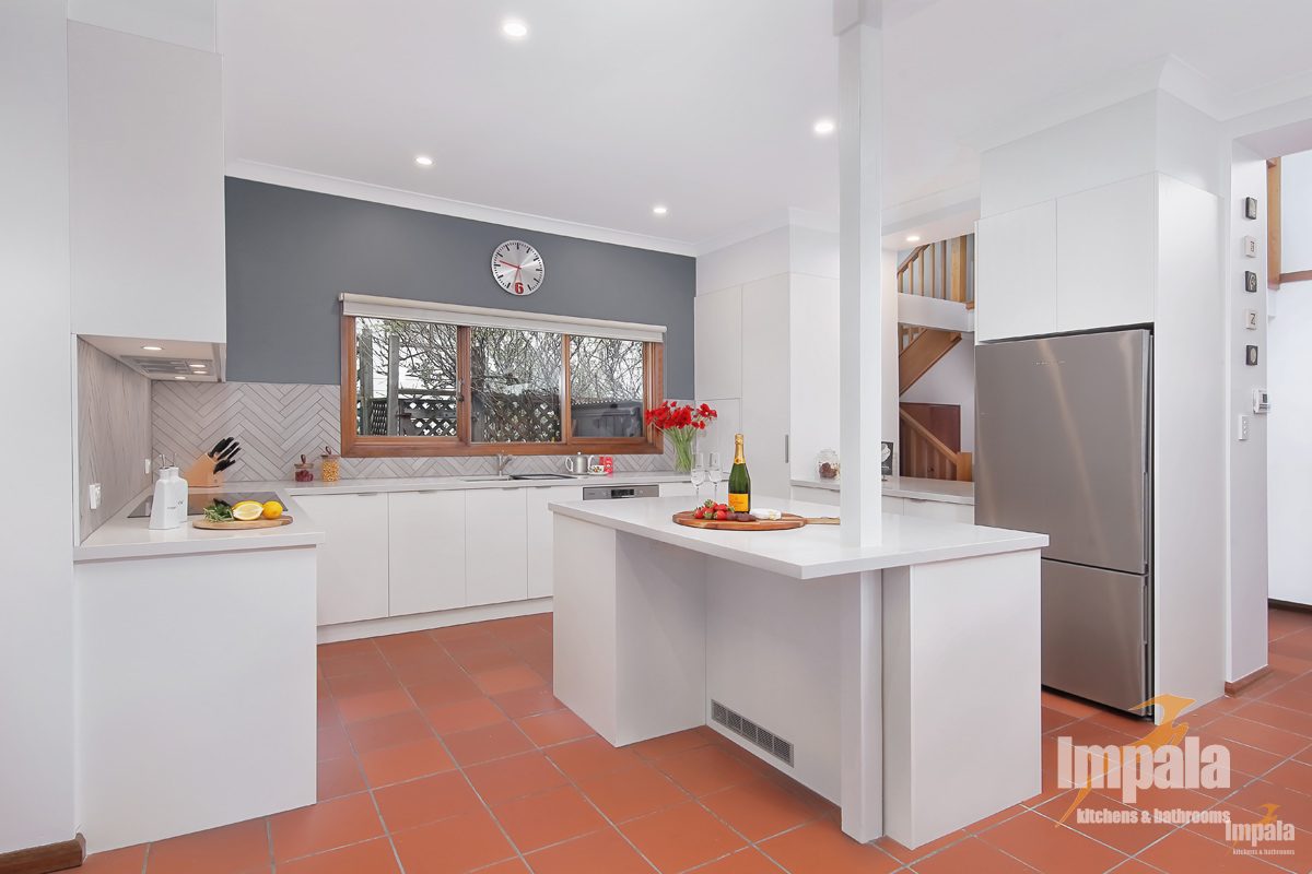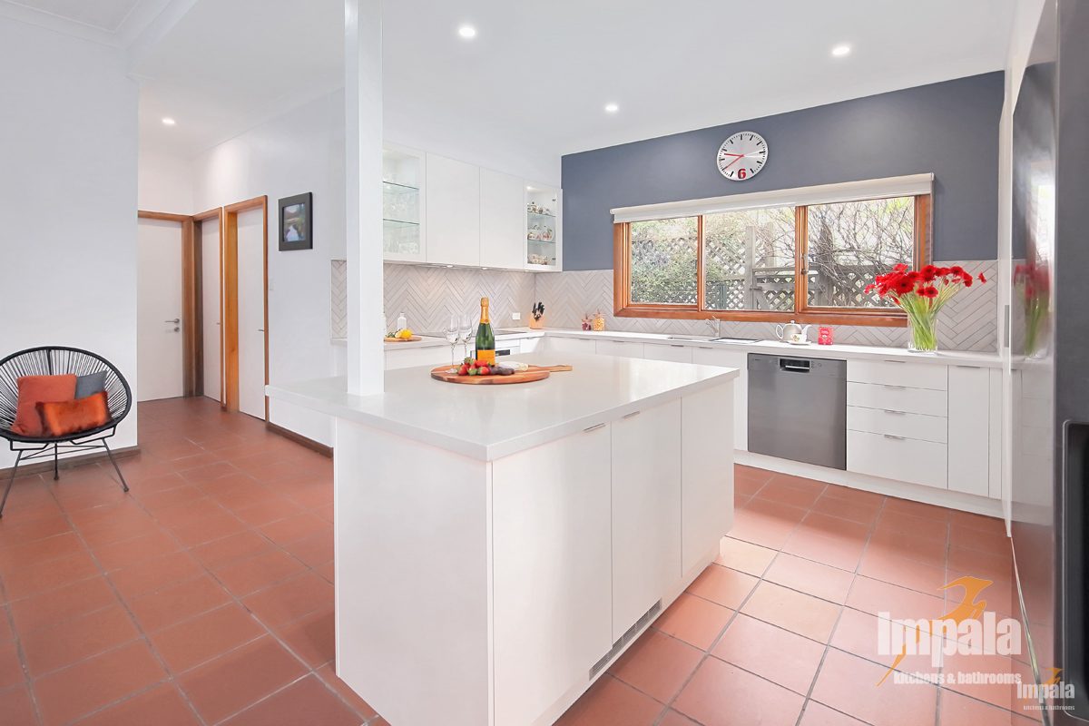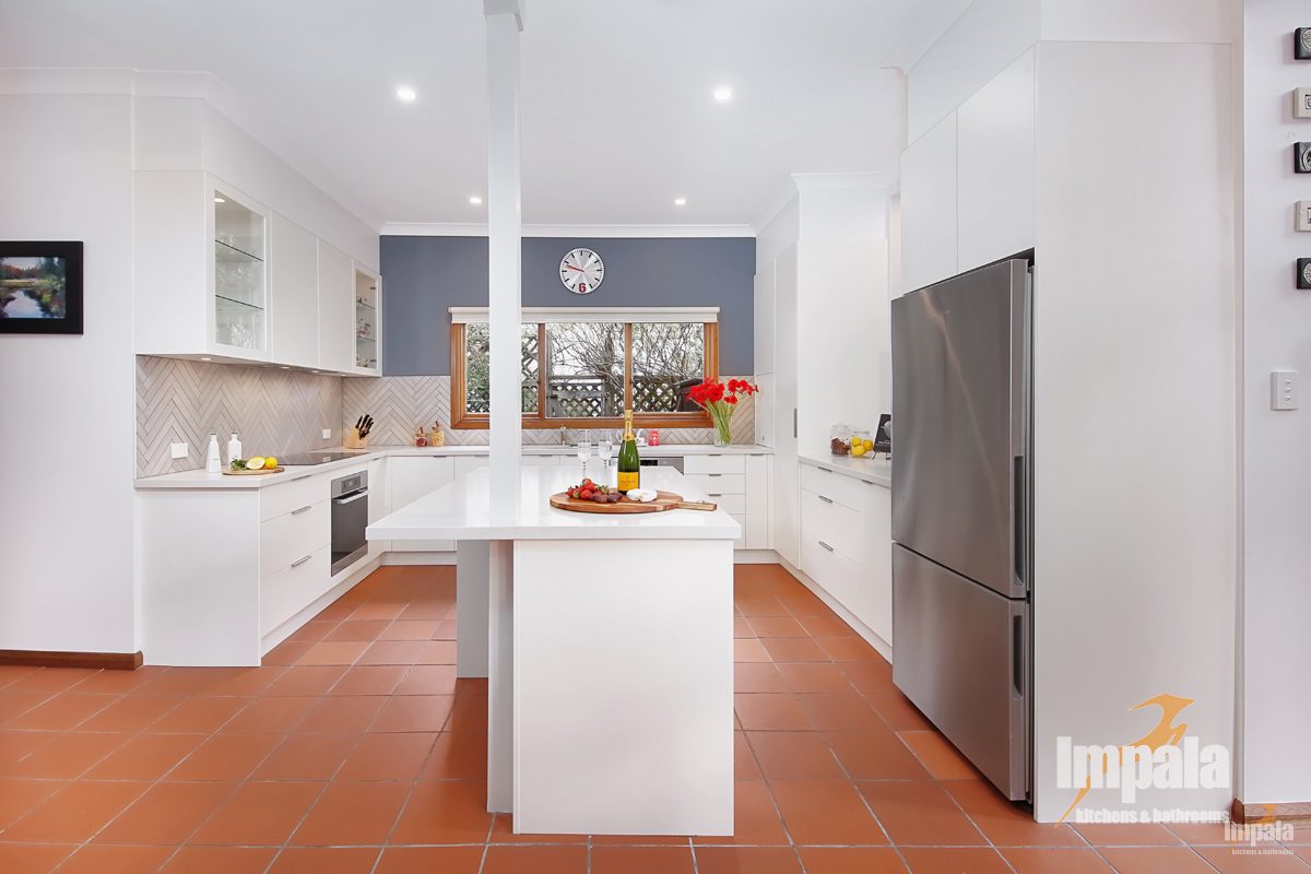The family liked the layout of their current kitchen, but it needed a refresh. With timber doors and angled cabinetry, the kitchen was dated. Clients wanted to keep the existing floor as well, so the new kitchen needed to work with the terracotta tiles. Impala Designer Tim Whitemen also had the added challenge of work with a structure post that could not be removed.