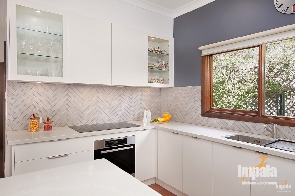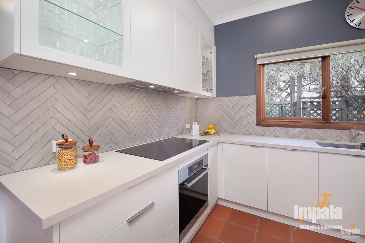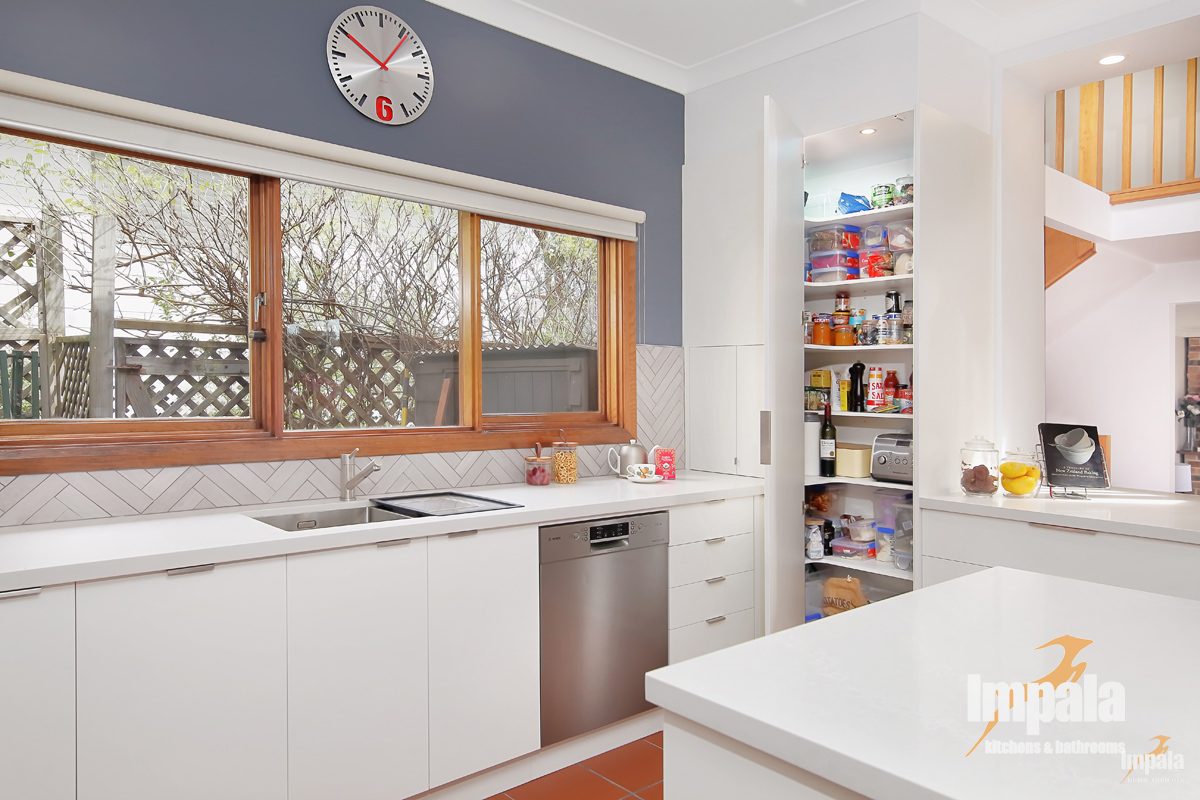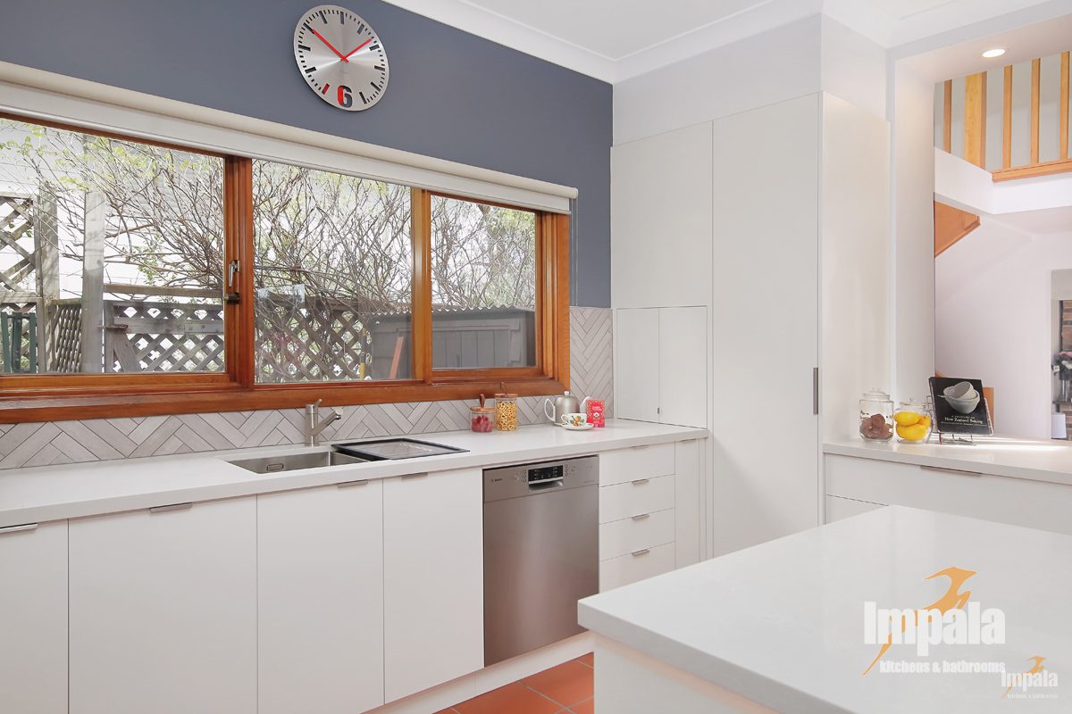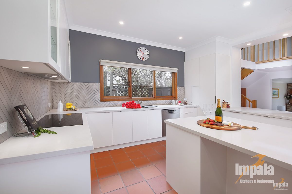 The family liked the layout of their current kitchen, but it needed a refresh. With timber doors and angled cabinetry, the kitchen was dated. Clients wanted to keep the existing floor as well, so the new kitchen needed to work with the terracotta tiles. Impala Designer Tim Whitemen also had the added challenge of work with a structure post that could not be removed.