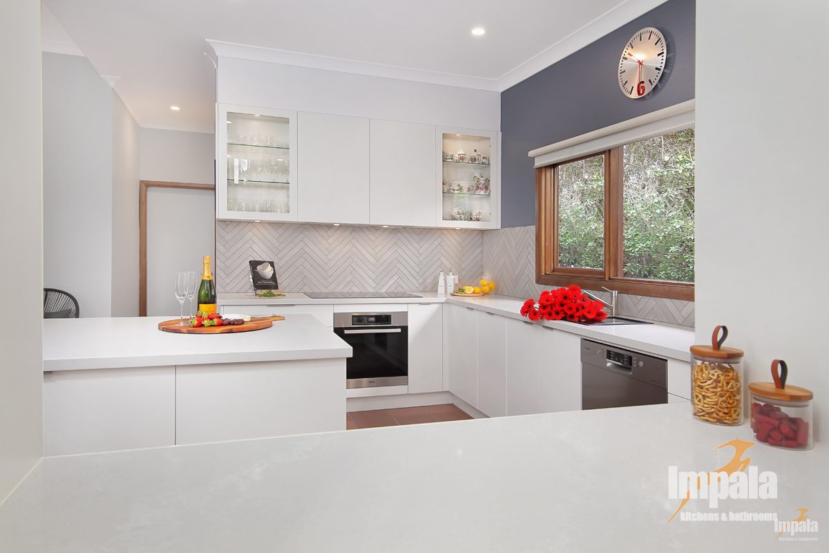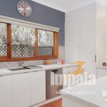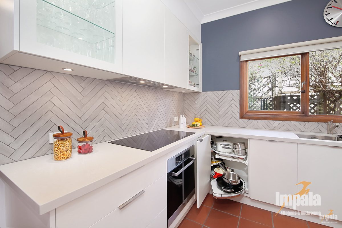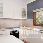 The end result is a lovely fresh white kitchen, with texture tiles and painted wall giving warmth and interest. To maximise space and ensure the functionality of the kitchen Tim added a under bench pantry, a Le-Mans (lazy Suzanne) corner unit and a step-in pantry. The addition of a steam oven built into the island bench ensured cabinet space wasn’t lost and new modern cooking practices could be enjoyed.