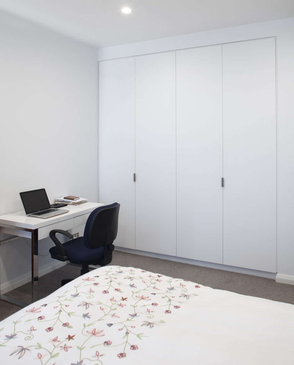 3. Wardrobes in other bedrooms were to be white polyurethane (matching the walls) with doors flush to the adjacent walls, finished with a shadowline surround. Minimal handles were chosen in keeping with simplicity and practicality.